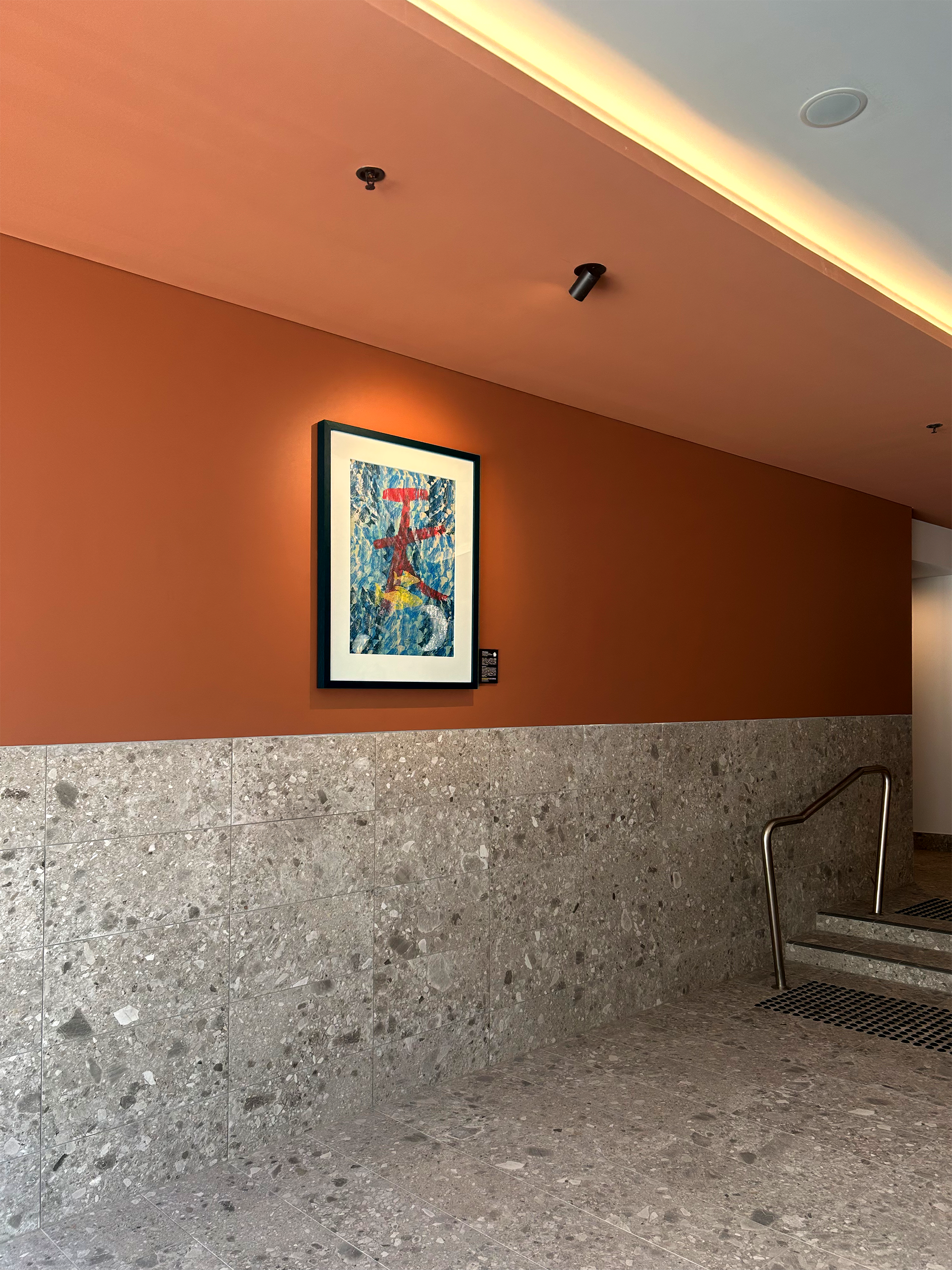 Located on level 23, this Shane Youngberry diptych brightens the co-working space provided for residents.